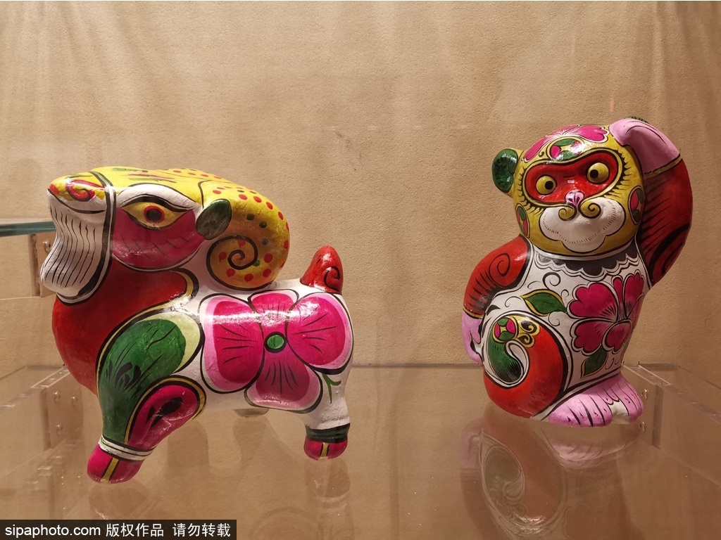 Las esculturas de arcilla pintadas del zodiaco chino expuestas en el Museo Nacional de China son obras típicas de Fengxiang, Shaanxi, con colores brillantes y formas exageradas pero amables.