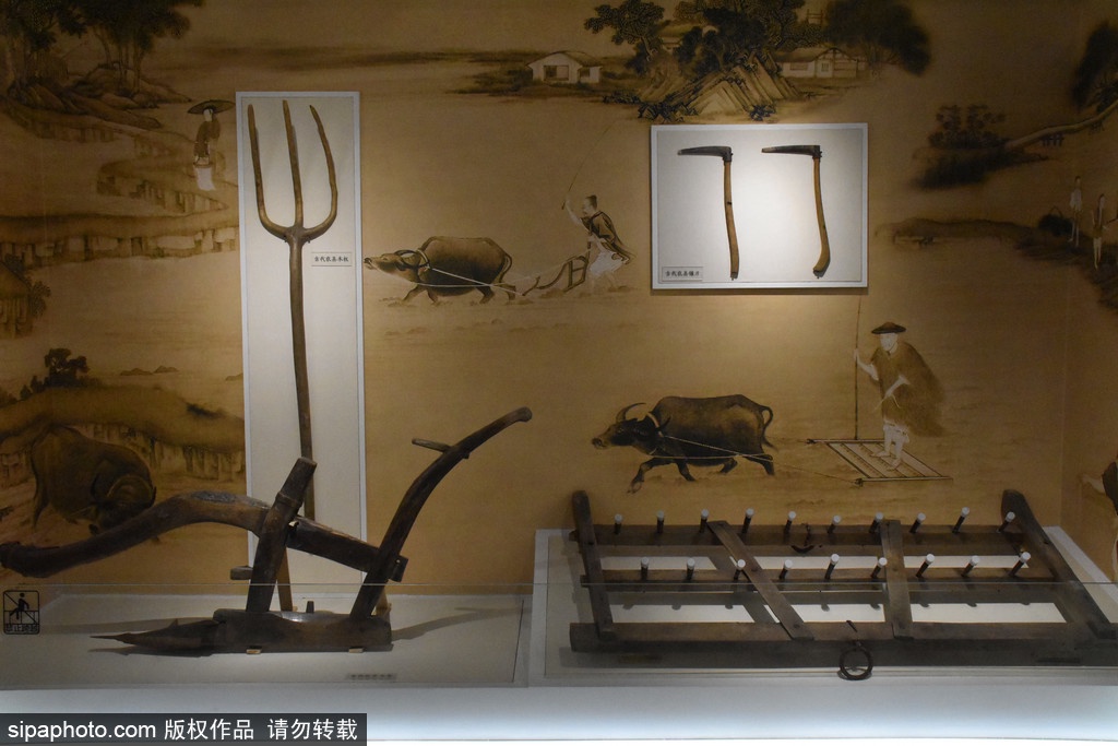 Se exhiben herramientas agrícolas tradicionales en el Palacio de Verano. Con el desarrollo de la tecnología, una variedad de herramientas avanzadas han sustituido las herramientas agrícolas tradicionales. Aunque estos objetos antiguos ya no sirven en la agricultura, han sido testigos de la cultura agrícola de las llanuras centrales de China. A través de la exposición, se puede imaginar las escenas del pasado cuando los campesinos estaban ocupados en el campo usando estas herramientas agrícolas tradicionales.