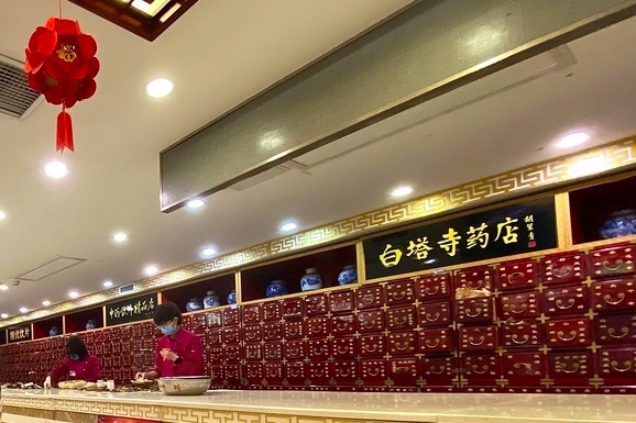 La Farmacia Baitasi se conocía anteriormente como las farmacias Qi Hui Tang y Da He Tang en Beijing. Lleva el nombre de la Pagoda Blanca del Templo Miaoying ubicado en Fuchengmennei. La Farmacia Baitasi tiene un edificio de cinco pisos con diseño elegante y simple y estilo arquitectónico moderno.