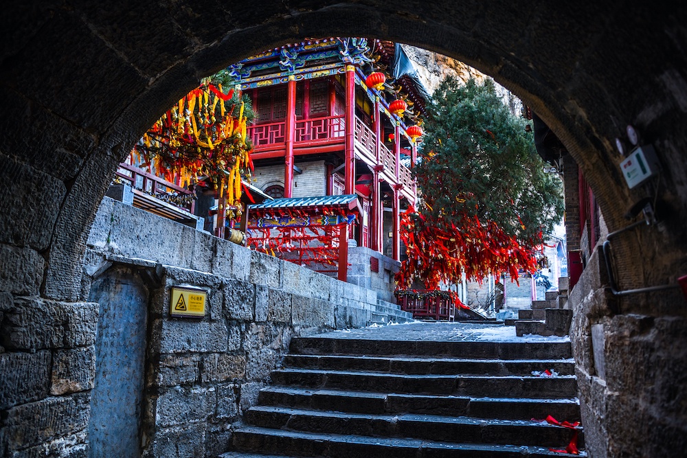 Situado en las ruinas neolíticas de hace 10.000 años, la zona del Palacio Wahuang tiene una superficie de 5 kilómetros cuadrados y consta de cinco partes: la zona de entrada, el Jardín de Reparar el Cielo, el Lago de Reparar el Cielo, el Palacio Wahuang y el Valle de Reparar el Cielo. Desde la dinastía Han, el Palacio de Wahuang ha sido un templo de tres habitaciones, y hay lugares antiguos como tallas en piedra de la dinastía Qi del Norte, inscripciones de la dinastía Tang, muros de ladrillo de la dinastía Song y edificios de las dinastías Ming y Qing, así como paisajes naturales como bosques, valles, jardines y sistemas de agua. Entre ellos, las tallas de piedra de la Dinastía Qi del Norte, el edificio principal Pabellón Wahuang y la Ceremonia de Nüwa son las tres esencias principales del lugar, que son reconocidas respectivamente en el país y en el extranjero por sus distinciones de "primera talla mural de obras clásicas confucianas en el mundo", "edificio vivo y templo colgante" y "patrimonio cultural intangible nacional", y son bases importantes para el estudio de la cultura de los antepasados de China.