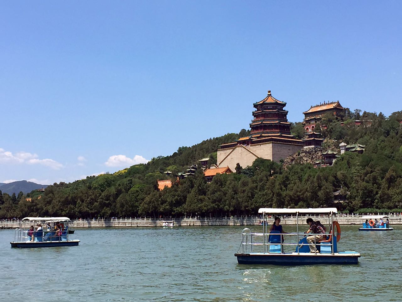 El Lago Kunming del Parque de Verano es la zona acuática más atractiva de los suburbios de Beijing. El área del Lago Kunming, con 3000 hectáreas, ocupa el 75% de la del parque total, es cinco veces más grande que el Mar de Norte de Beijing. Ahora, en el parque 300 embarcaciones de todo tipo están listos para recibir a los visitantes.
