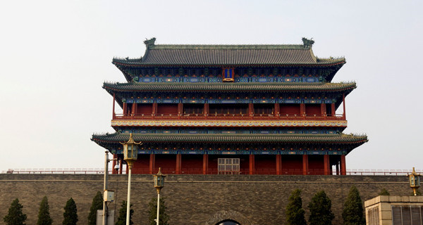 Se trataba de un sistema de defensa de la arquitectura intacta en tiempos antiguos, y consta de tres partes que eran la torre de la puerta de la ciudad, la torre de vigilancia y el interior de la ciudad. Sin embargo, Zhengyang tiene bajo muchos daños y reparaciones durante el último medio siglo, sólo la torre de la puerta de la ciudad y la torre de vigilancia están bien conservados en la actualidad, y estos dos edificios fueron una vez el símbolo de la antigua ciudad de Beijing.