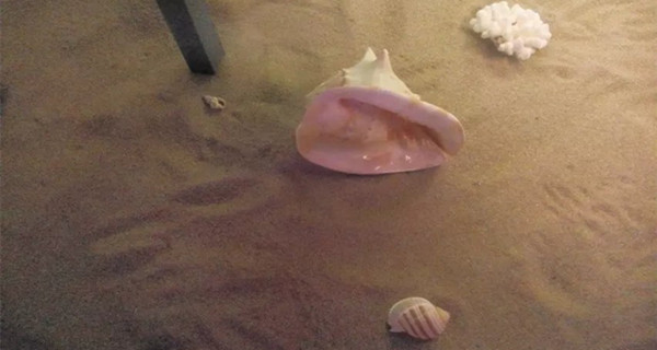 Después de entrar en la puerta y bajar las escaleras a la sala subterránea, usted se sorprenderá por una bandada de peces rojos. La gran cantidad de peces de color rojo dentro de las "paredes" - peceras de vidrio. Rodeado de estas "paredes" hay una playa artificial que se puede ver con conchas esparcidas por la arena.