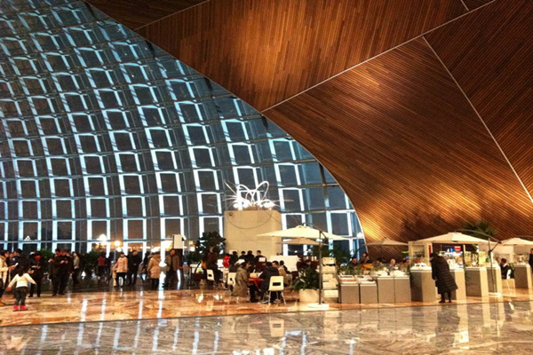 Fue diseñado por el arquitecto francés Paul Andreu. La construcción comenzó en diciembre de 2001 y el concierto inaugural se celebró en diciembre de 2007.