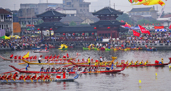 Los botes de dragón se llaman así porque la proa y la popa de la embarcación tienen la forma del tradicional dragón chino. Un equipo de personas rema en un intento de llegar a su destino antes de que los otros equipos. Un miembro del equipo se encuentra en la parte delantera del barco tocando un tambor con el fin de mantener la moral y asegurar que los remeros se mantienen en el tiempo unos con otros. La leyenda sostiene que la competencia tiene su origen en la idea de que las personas que remaban sus botes para salvar a Qu Yuan después de que se ahogó en el río. Se dice que el equipo ganador traeria la cosecha y la vida feliz a la gente de su pueblo.