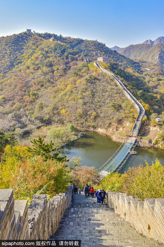 La primera vista maravillosa es que la Gran Muralla construida en el reinado del emperador Yongle en la dinastía Ming se cierne sobre la cresta y rodea la orilla del lago Haoming, y el paisaje es hermoso y espectacular.