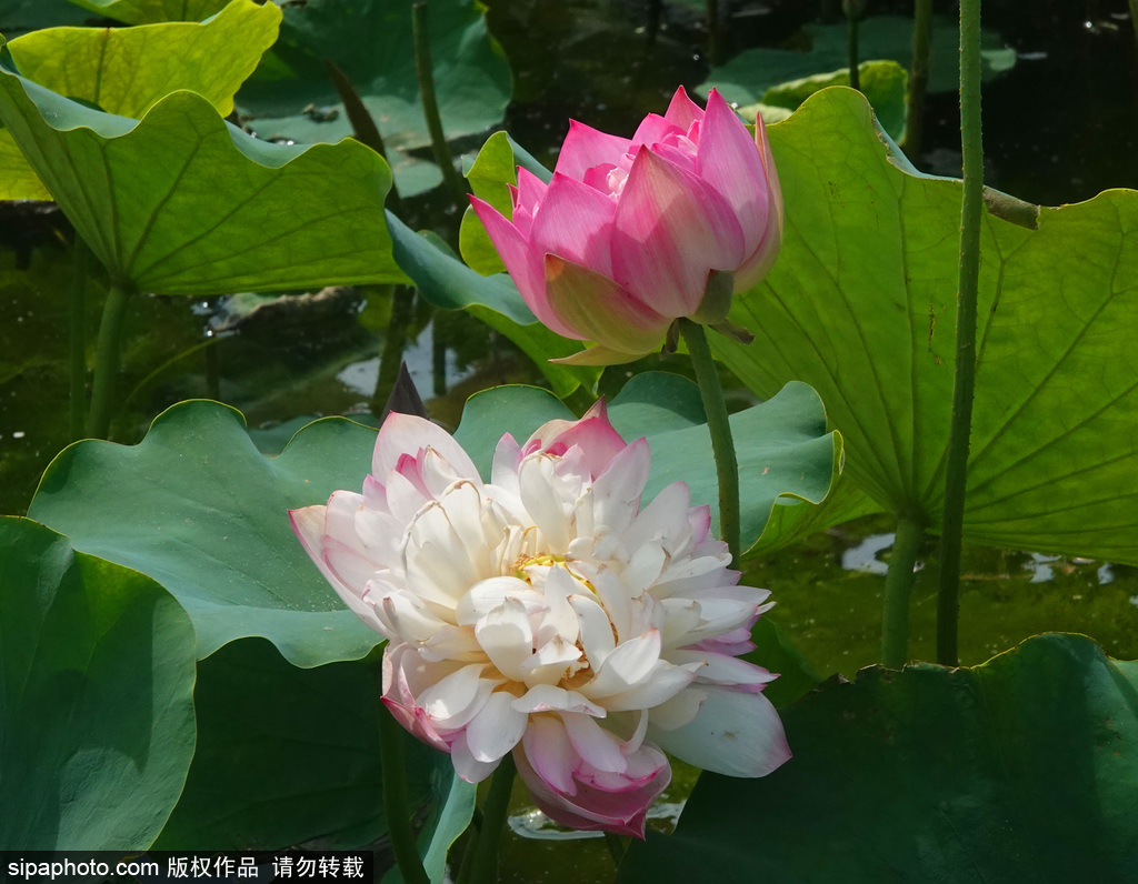 No solo las flores de loto son bonitas. Florecen simultáneamente con muchas otras plantas acuáticas. El Parque Honglingjin tiene cultivados 2.000 metros cuadrados de lotos, así como casi 10.000 metros cuadrados de plantas acuáticas como Pontederia cordata, Lythrum salicaria L. y Schoenoplectus tabernaemontani (C. C. Gmelin) Palla. El área de plantación de lotos en el lago Yinghua en el Parque Yuyuantan es de aproximadamente 8.000 metros cuadrados, y las especies son principalmente loto rojo de Baiyangdian. También hay una pequeña cantidad de loto blanco Qianling, loto Wufei y loto Daziyu, etc. También hay varias plantas acuáticas como juncos, Schoenoplectus tabernaemontani (C. C. Gmelin) Palla, Zizania latifolia (Griseb.) Turcz. ex Stapf y Typha orientalis C. Presl. El Parque Forestal Olímpico tiene un área de apreciación de loto de aproximadamente 2,5 hectáreas, distribuidas principalmente en el Humedal del Parque Sur y el Canal de Desvío de Qinghe.