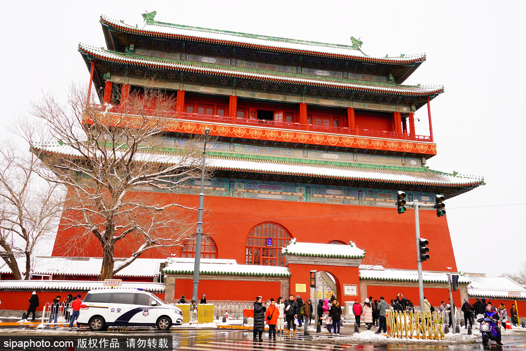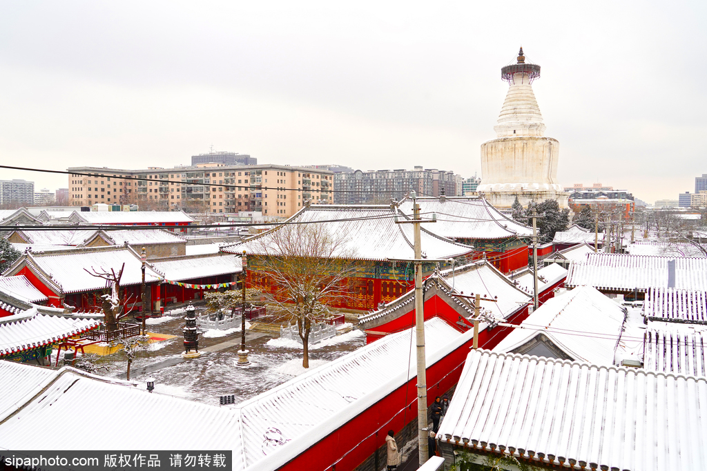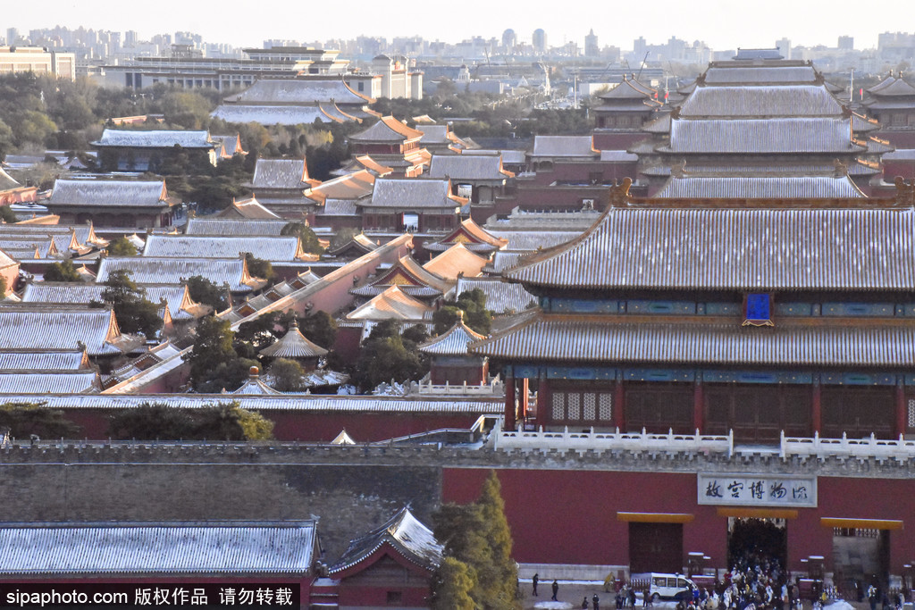 Mirando hacia el norte, el solemne complejo del Salón Shouhuang está a la vista y la Torre del Tambor en la distancia se asoma en la nieve. Mirando hacia el este, los patios cercanos y los altos edificios a lo lejos le muestran que esta es una ciudad donde lo antiguo y lo moderno se complementan. Mirando hacia el sur, las tejas vidriadas doradas de toda la Ciudad Prohibida se cubren gradualmente de nieve blanca, y las paredes de color rojo oscuro se convierten en un fondo de la nieve. Después de la nevada, la Ciudad Prohibida cubierta de la nieve blanca debería ser la más hermosa del año. Mirando hacia el oeste, la Pagoda Blanca del Parque Beihai, la Pagoda Blanca del Templo Baita y la Torre Central de Radio y Televisión en la distancia, con las Colinas Occidentales como telón de fondo, forman una gran escena moderna del oeste de Beijing.