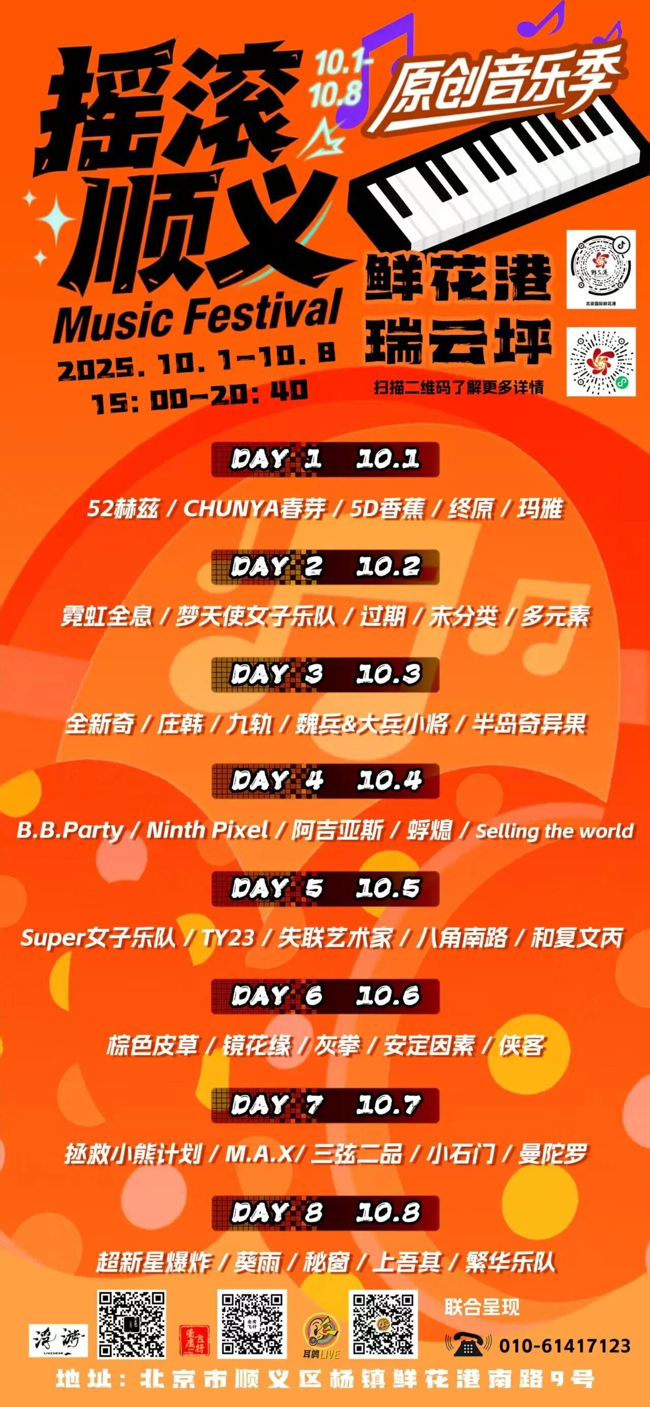Del 13 de septiembre al 19 de octubre, se celebrará el Festival Cultural del Crisantemo de Beijing 2025 en el Puerto Internacional de Flores de Beijing. Del 1 al 8 de octubre, se celebrará el Festival de Música Rock Original de Shunyi de 15:00 a 20:40 todos los días. Los amantes de la música y los espectáculos en vivo no se lo pueden perder.