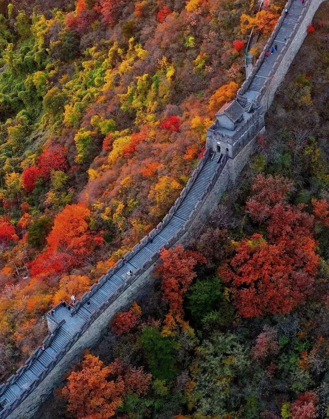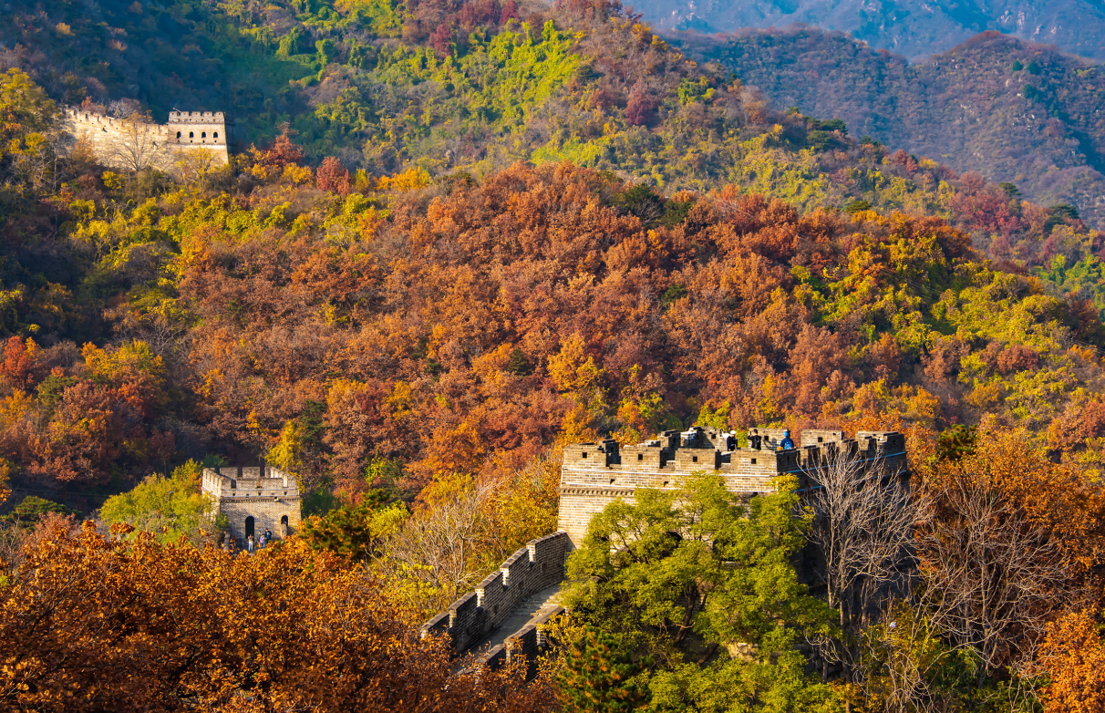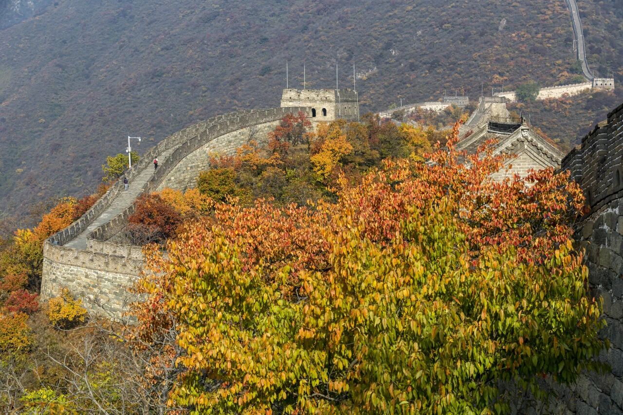 La Gran Muralla de Mutianyu ha ostentado durante mucho tiempo la reputación de "Entre todas las secciones de la Gran Muralla, Mutianyu es la más hermosa". También es un destino ideal para contemplar las hojas rojas en otoño. Con la llegada del otoño, en Mutianyu parece que el viento otoñal ha derribado una paleta de colores: desde la cima hasta el pie de la montaña, se ve colores rojo, amarillo, naranja y verde. Cada paso revela una nueva vista, y cada sección despliega una pintura, tejiéndose un fluido y brillante pergamino otoñal.