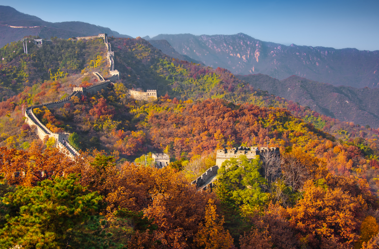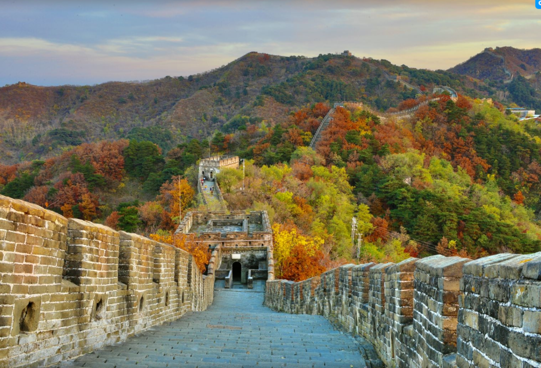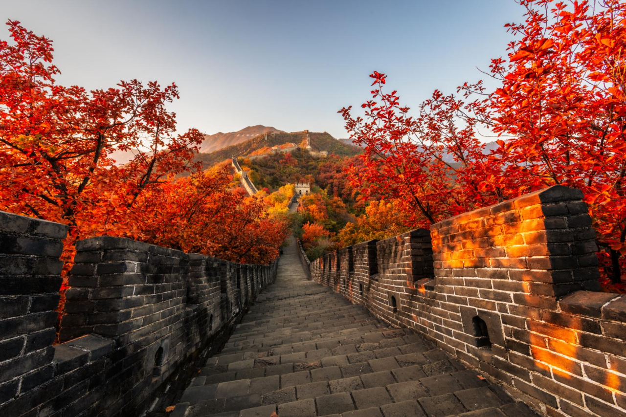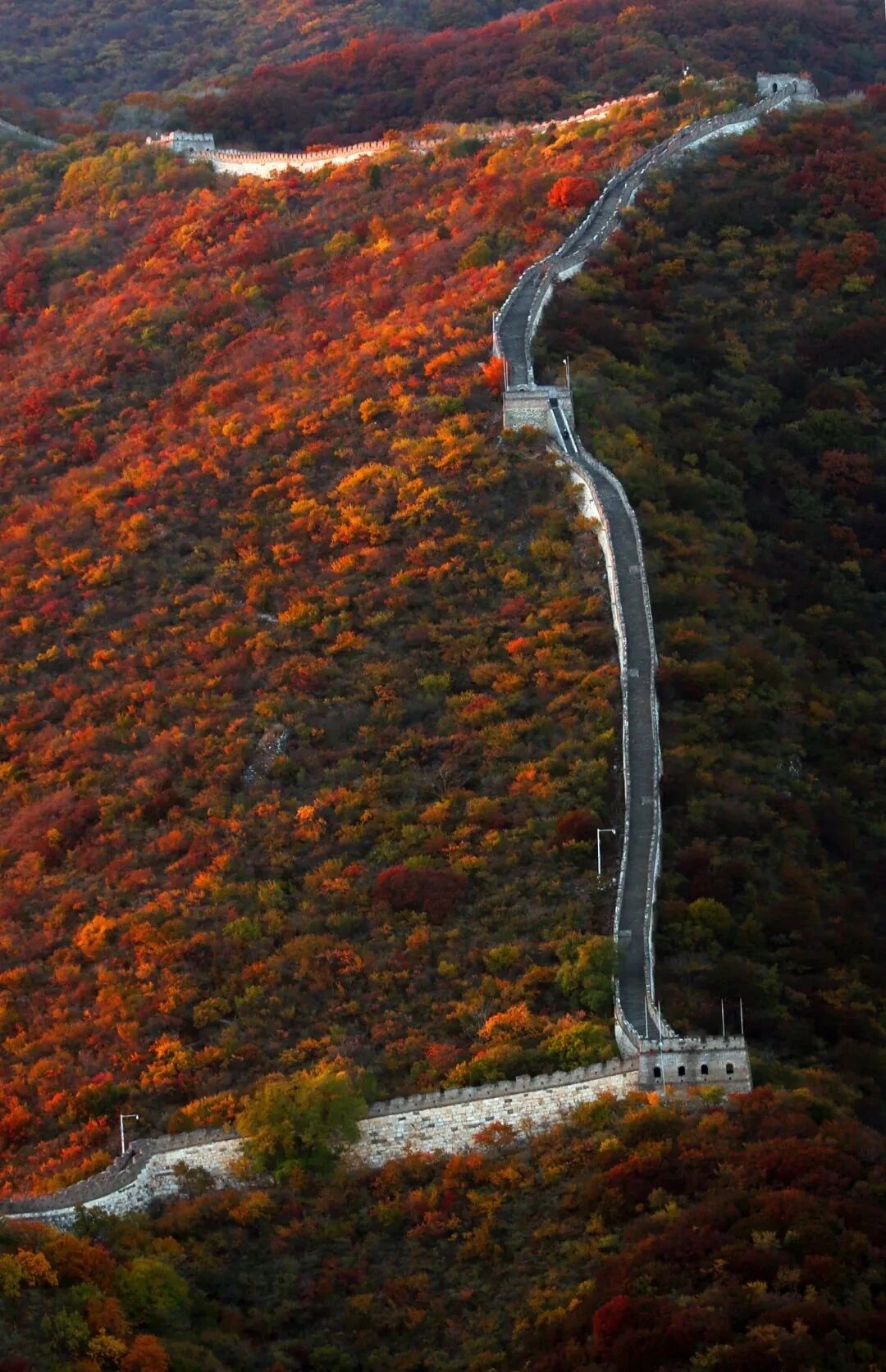 La Gran Muralla de Mutianyu ha ostentado durante mucho tiempo la reputación de "Entre todas las secciones de la Gran Muralla, Mutianyu es la más hermosa". También es un destino ideal para contemplar las hojas rojas en otoño. Con la llegada del otoño, en Mutianyu parece que el viento otoñal ha derribado una paleta de colores: desde la cima hasta el pie de la montaña, se ve colores rojo, amarillo, naranja y verde. Cada paso revela una nueva vista, y cada sección despliega una pintura, tejiéndose un fluido y brillante pergamino otoñal.