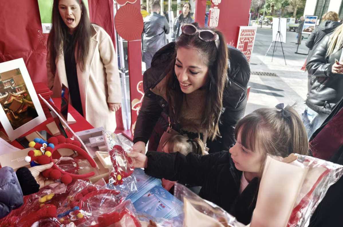La primera feria del templo se celebró en la Plaza del Ayuntamiento de Atenas el 11 de febrero. En la zona de exposiciones del patrimonio cultural inmaterial, las habilidades del teatro de sombras y del bordado de Beijing tuvieron una presencia impresionante, permitiendo a los residentes locales experimentar personalmente estas habilidades del patrimonio cultural inmaterial chino. El área de productos culturales y creativos fusionó diseños tradicionales y modernos, creando un ambiente diverso de "exhibición + interacción + consumo", que permitió al público griego experimentar de forma inmersiva la cultura pekinesa y el ambiente festivo del Año Nuevo Chino.