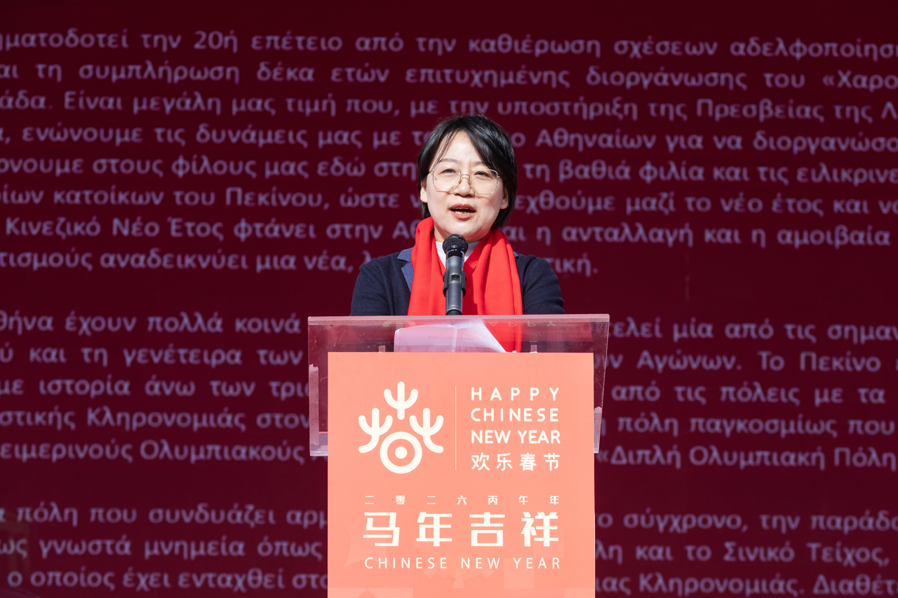 En las celebraciones del Feliz Año Nuevo Chino, el embajador de China en Grecia, Fang Qiu; la ministra griega de Cohesión Social y Asuntos Familiares, Mihailidou; el alcalde de Atenas, Haris Dukas; el alcalde de El Pireo, Yannis Morales; y Wang Xin, jefa de la delegación de Beijing, pronunciaron discursos. Recordaron con cariño la historia de los diez años del "Feliz Año Nuevo Chino" en Grecia, destacaron su importante papel en la promoción de los intercambios entre ambos pueblos y el aprendizaje mutuo entre ambas civilizaciones, expresaron su deseo de profundizar aún más la cooperación cultural chino-griega y escribir juntos un nuevo capítulo de la amistad, y extendieron sus felicitaciones del Año Nuevo a los pueblos de ambos países.