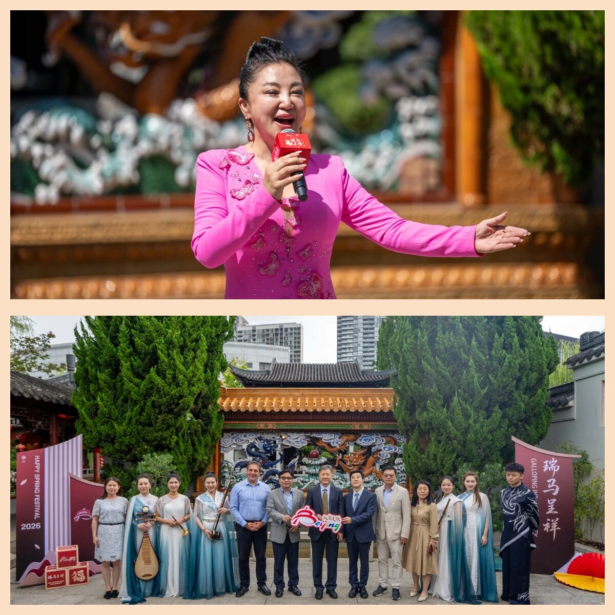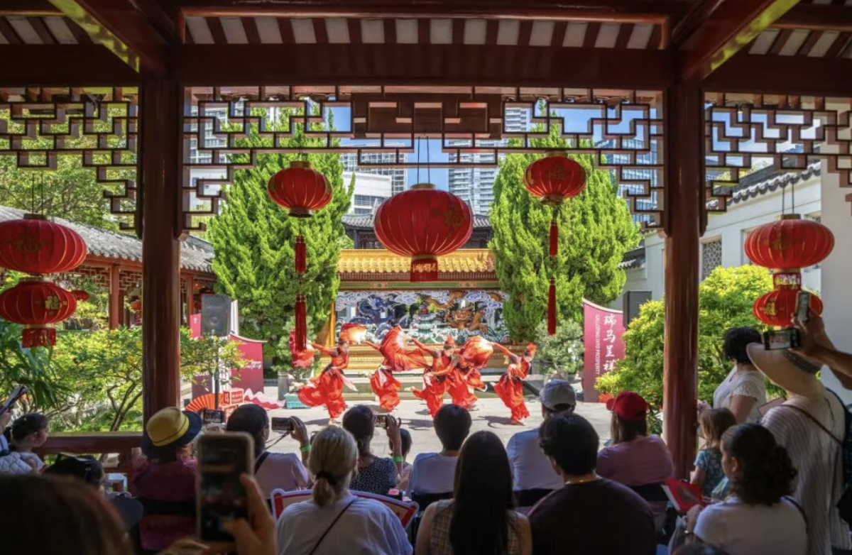 La fiesta "Feliz Año Nuevo Chino" de este año, celebrada en el Jardín de la Amistad de Sídney, integró ingeniosamente las actuaciones artísticas en los pabellones, las terrazas junto al agua y los sinuosos senderos del jardín, permitiendo que la cultura china fluyera con naturalidad en el paisaje. El público de Sídney pudo experimentar una atmósfera inmersiva donde "la obra se representa dentro del escenario y la gente pasea por una pintura", sintiendo profundamente el rico patrimonio cultural de Beijing y los mejores deseos para el Año Nuevo.