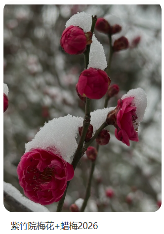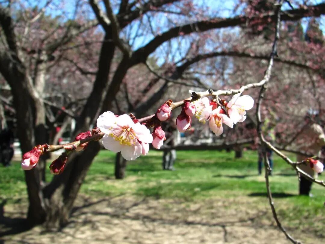 Actualmente, algunos ciruelos en el Parque Zizhuyuan están en plena floración. Si bien la superficie destinada a la plantación de ciruelos no es extensa, posee un encanto único que complementa el paisaje en general.