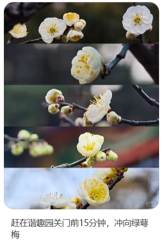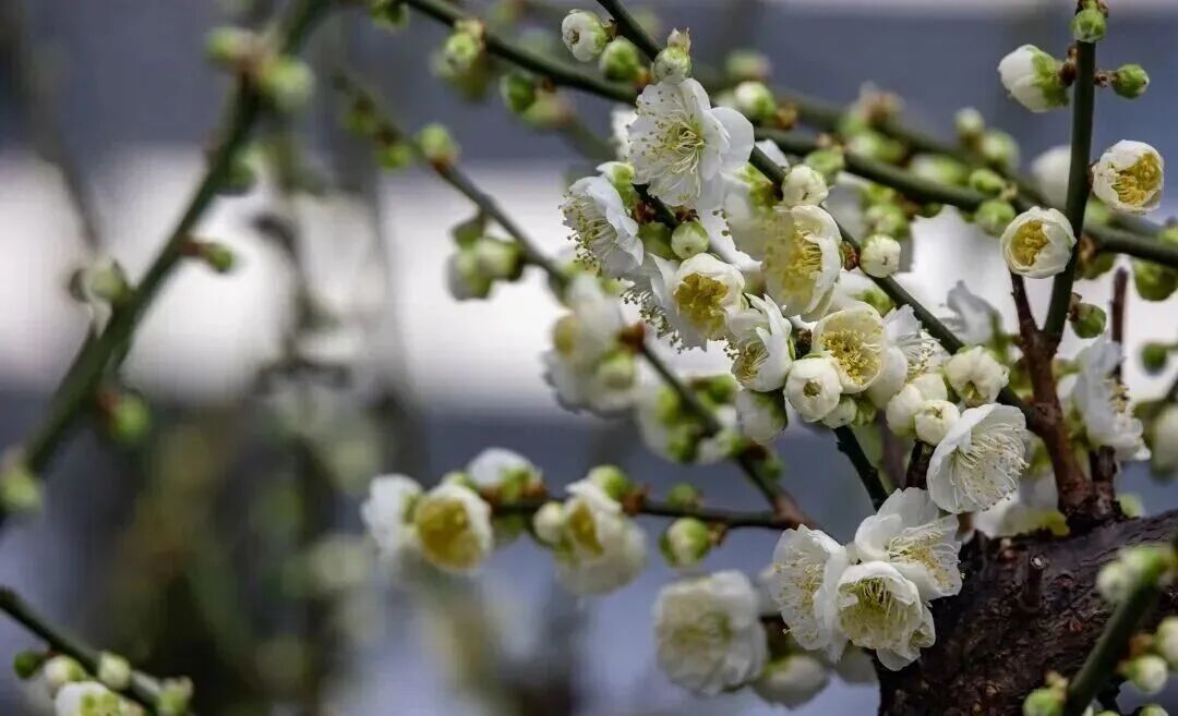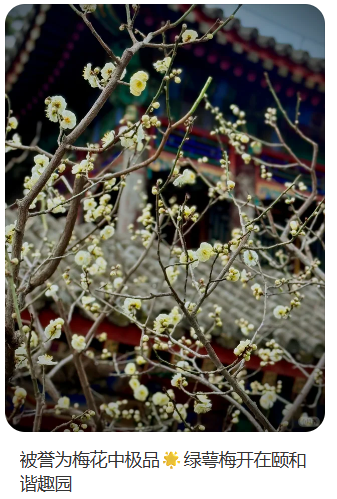 Recientemente, los internautas observadores notaron que las flores de ciruelo verdes en el Jardín de los Placeres Armoniosos del Palacio de Verano también han florecido en abundancia. Las ramas están repletas de capullos claros y delicados, que encarnan plenamente la estética china.