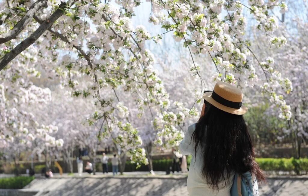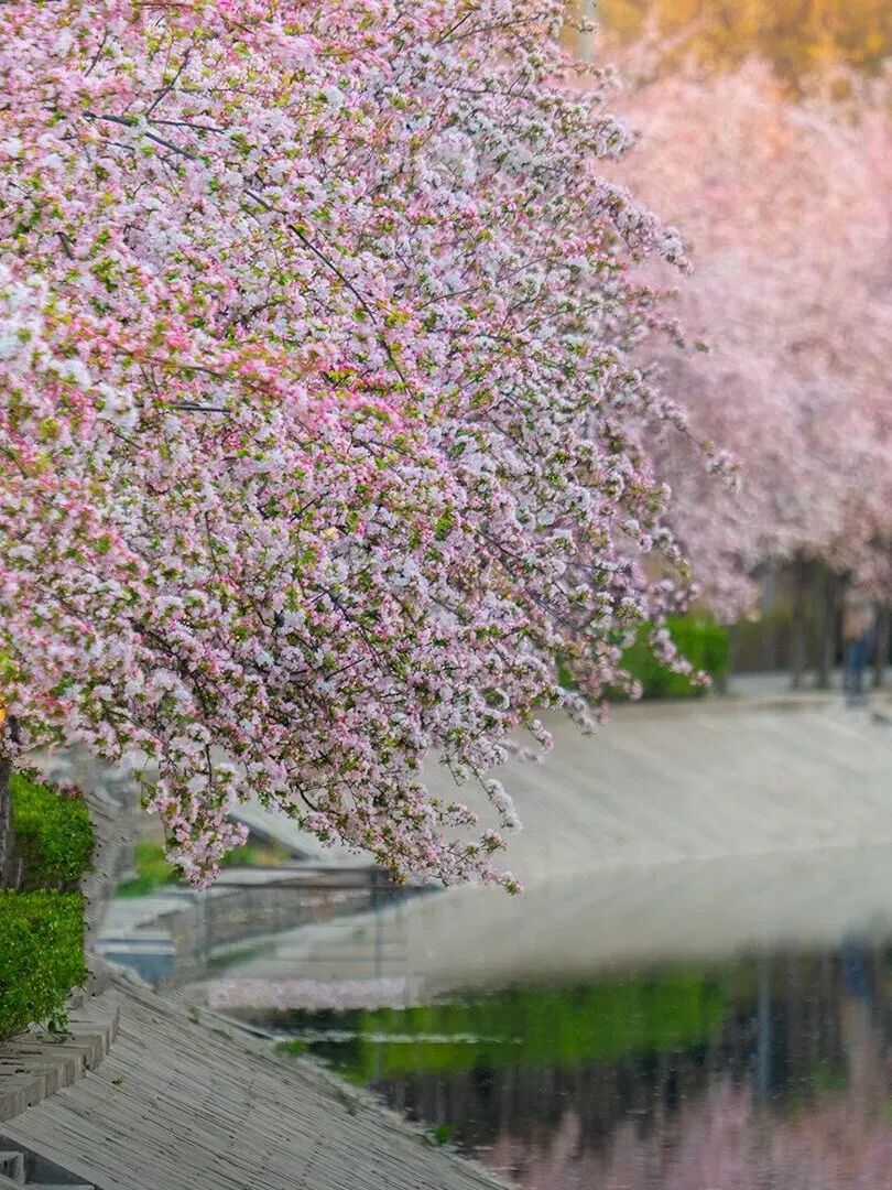 Cada año, a principios de abril, los manzanos silvestres que crecen a orillas del río Wangjing florecen en todo su esplendor, con sus ramas cargadas de hojas y racimos de flores. Cuando sopla una brisa suave, los pétalos caen como lluvia, tiñendo todas las orillas de un tono blanco rosado. Los pétalos caen sobre el agua, sobre los hombros y en los recuerdos de la primavera.