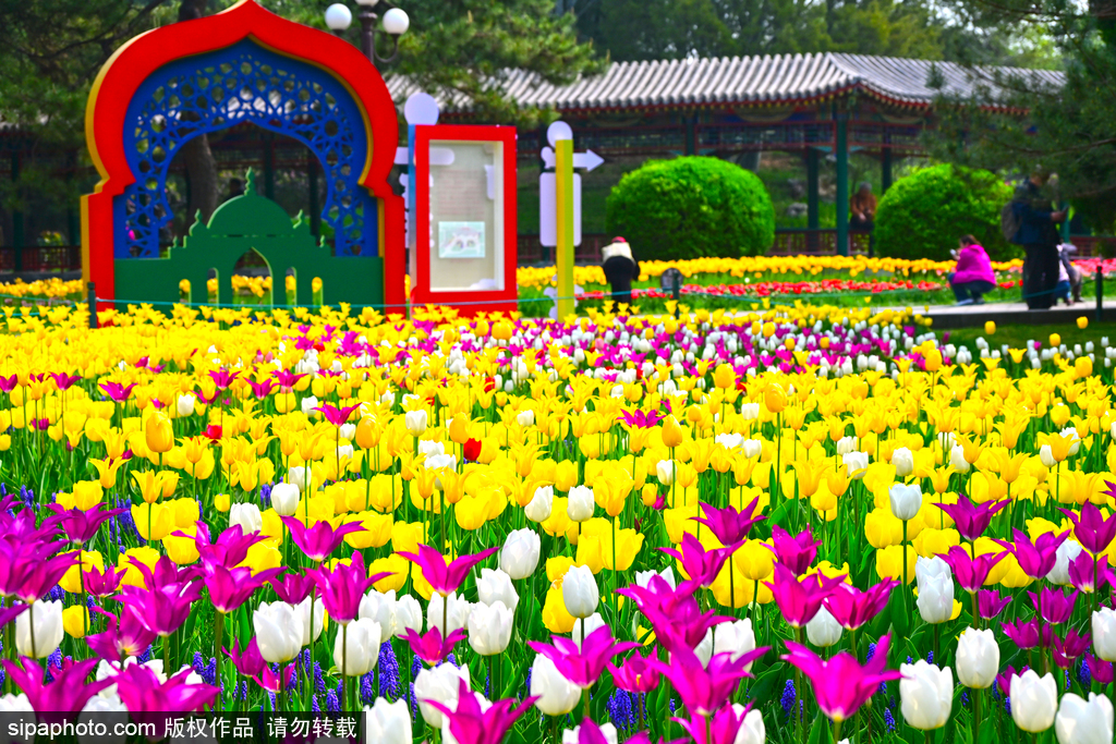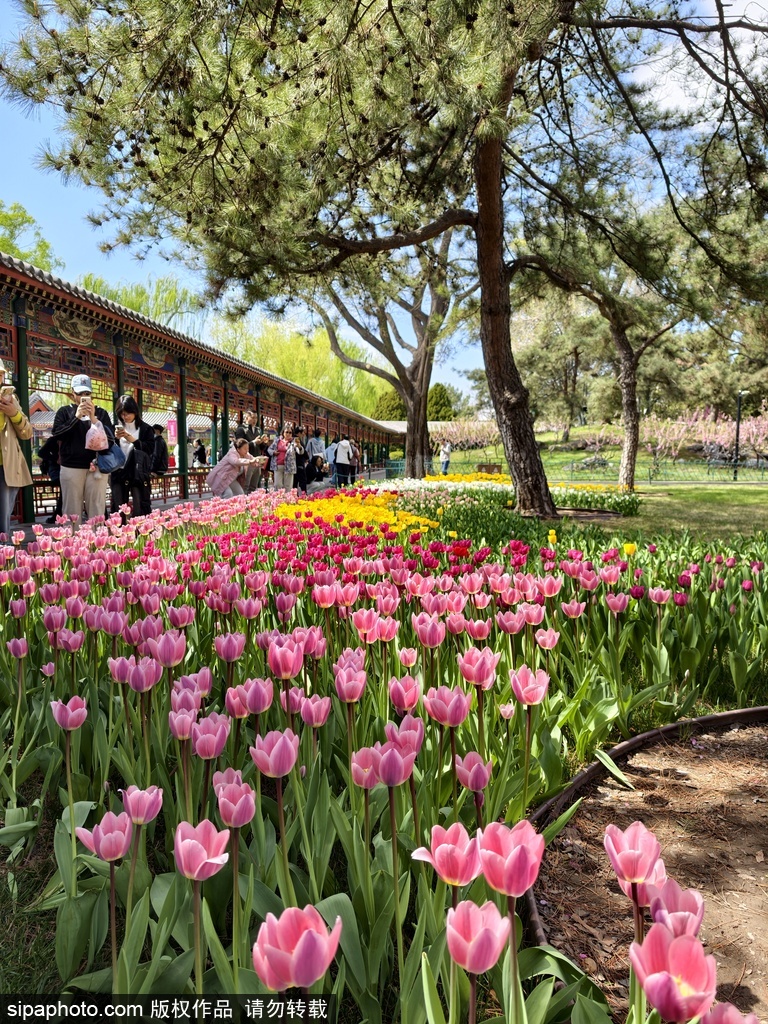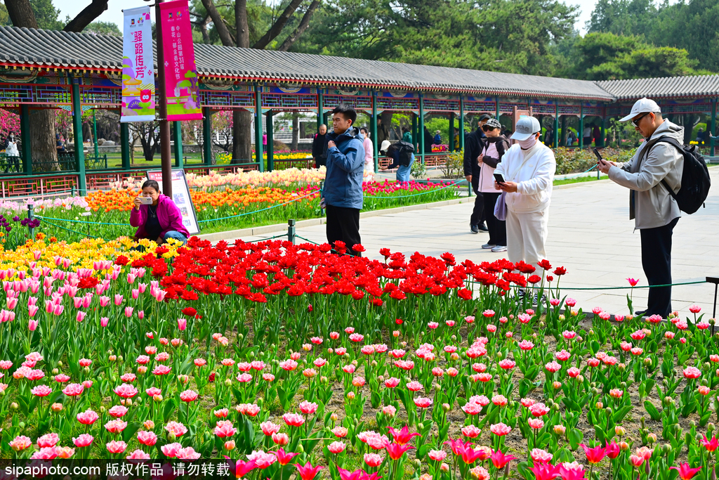 Una visita al Parque Zhongshan para admirar los tulipanes es un ritual único para disfrutar de la primavera en Beijing. Actualmente, los tulipanes de diversos colores del parque están en plena floración. La luz del sol de abril se filtra entre los tallos, y los tulipanes, despliegan sus pétalos con gracia, mostrando una paleta de colores vibrantes.