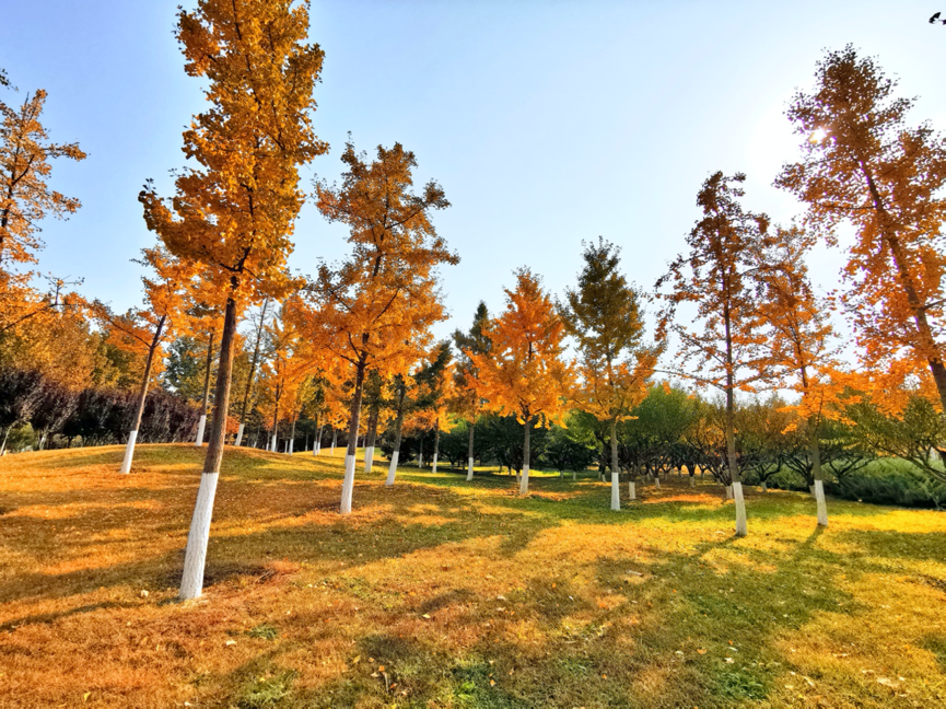 En otoño, el parque se cubre de hojas doradas de ginkgo. Al caminar por el sendero del bosque, se escucha el suave susurro de las hojas bajo los pies. Las hojas del arce y del Cotinus se tornan rojas y amarillas, creando un impresionante tapiz de colores que, a la distancia, recuerda a una llama ardiente. Una fotografía tomada en el puente Yahe, que muestra las hojas rojas del arce junto al río, crea un contraste de colores asombroso.